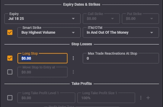 Yes! In fact, TradeBuilder is one of the few tools that lets you manage options trades based on the underlying stock price. For example, you can close your options position automatically when the underlying stock price hits your stop or target - something most brokers don’t allow directly.