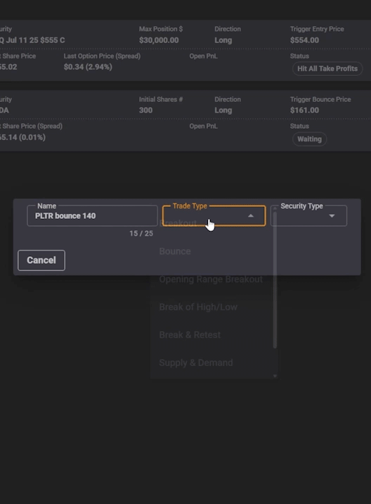 You can pause or edit a trade plan with a single click. You’re still in the driver’s seat—TradeBuilder just makes sure your execution is consistent and efficient.