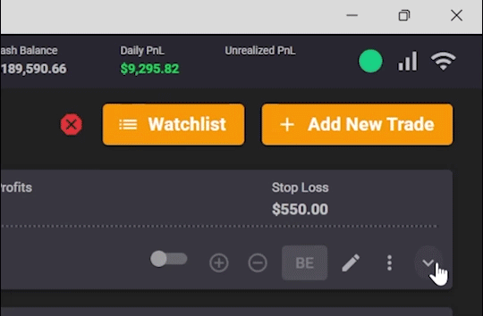 Make real-time adjustments to your trades, like instantly moving stops to breakeven, or trimming a position with just one click.
