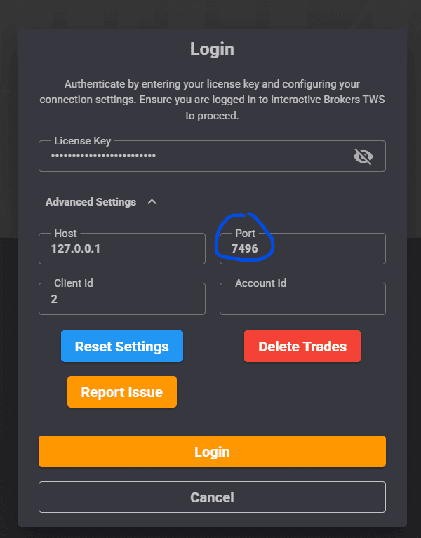 In the TradeBuilder login box, expand Advanced Settings and verify that the highlighted field is aligned as well.