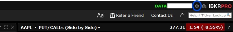 In your Trader Work Station, open the Settings menu (top right corner).
